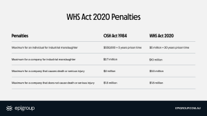 But the most significant in the entire legislation is the gross negligence/industrial manslaughter penalty. The current maximum penalty for a company is $2.7 million. Under the WHS Act this jumps to $10 million.